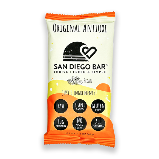 Discover the ultimate vegan snack packed with powerful antioxidants—our Original Antioxi Bar. Pecans, known for their superior antioxidant capacity, are the star ingredient in this delicious bar. At SD Bars, we’re committed to crafting the healthiest, tastiest nutrition bars, and our Pecan Antioxidant Bar is no exception. Infused with Himalayan Pink Salt, this bar delivers essential electrolytes and minerals for an energizing boost with every bite. Whether you need a quick snack or fuel for your workout, this bar has you covered.